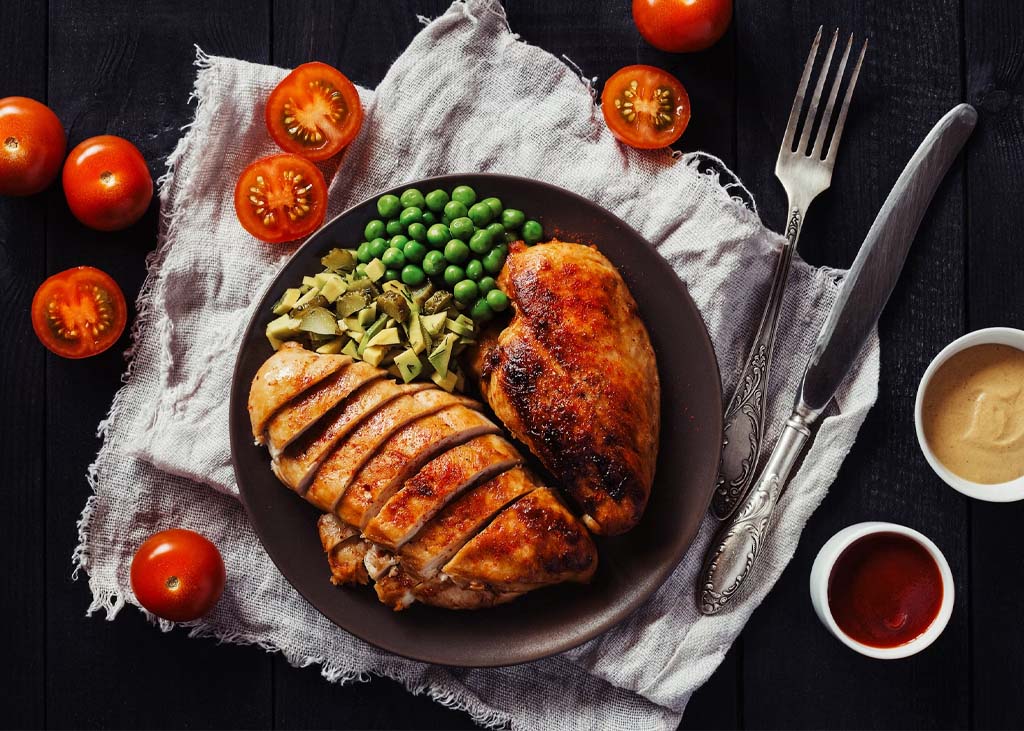 Proteínas: Carne magra, pescado, huevos y legumbres son esenciales para desarrollar músculo en las caderas y glúteos.